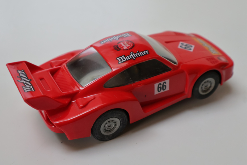 Porsche 935 Warsteiner nr. 66 voorzien van nieuwe bodem, tandwiel, motordraadjes, sleepcontacten, raam en bandjes. Wilt u onderdelen vervangen, dan kunt u die ook in deze winkel vinden.